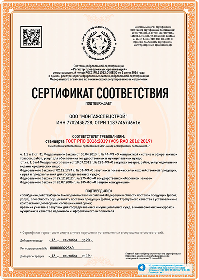 Сертификаты и документы MSS Renovation, подтверждающие качество, безопасность и соответствие стандартам на все виды работ
