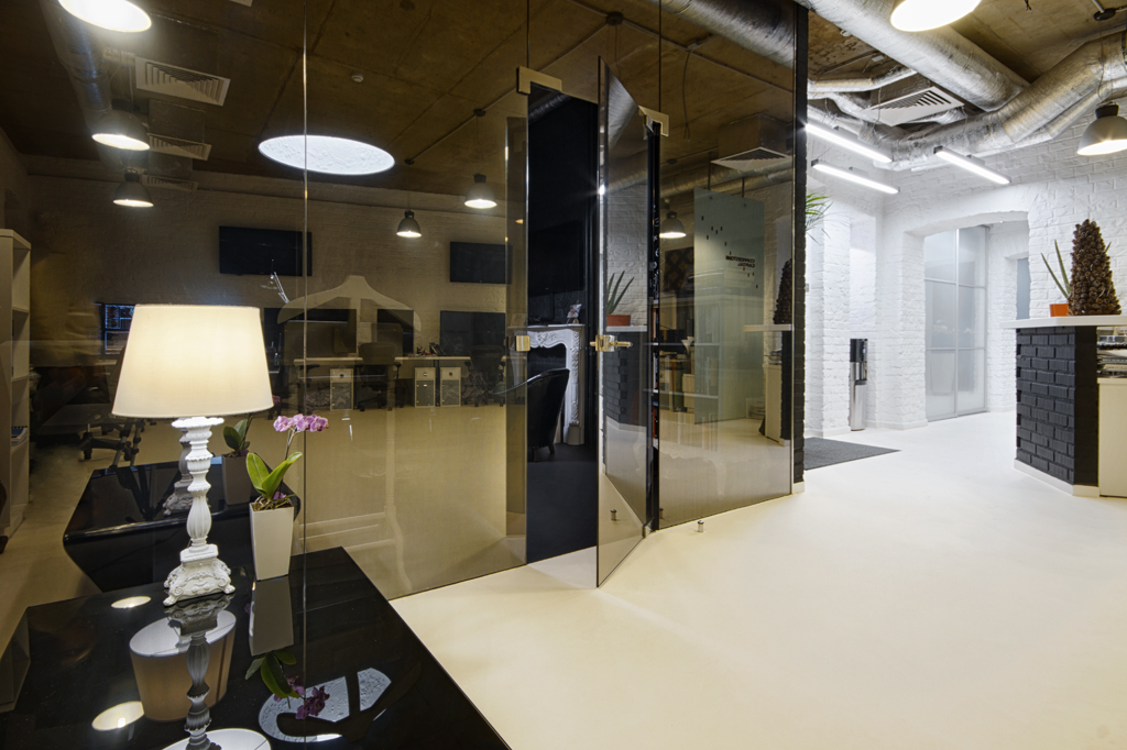 Прозрачные и тонированные стеклянные перегородки поддерживают современную концепцию офисов — максимум естественного света, ощущение единого пространства и командной работы при сохранении необходимой изоляции для комфортной работы.